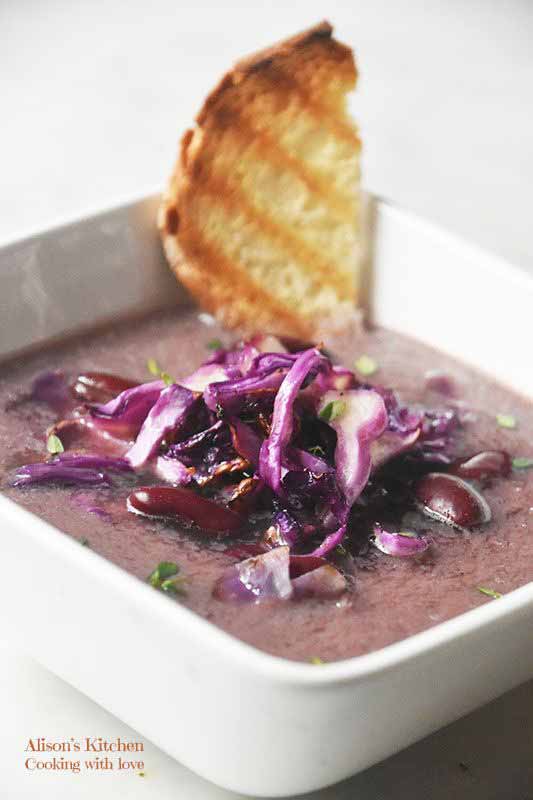 Warm, nourishing, and full of colour, this Braised Red Cabbage & Red Bean Soup is comfort in a bowl — a celebration of earthy winter flavours and wholesome plant-based goodness. Slow-braised red cabbage brings a natural sweetness and vibrant purple hue, while hearty red beans add richness, texture, and protein. Finished with aromatic herbs and a touch of tang, every spoonful feels grounding, nourishing, and deeply satisfying.