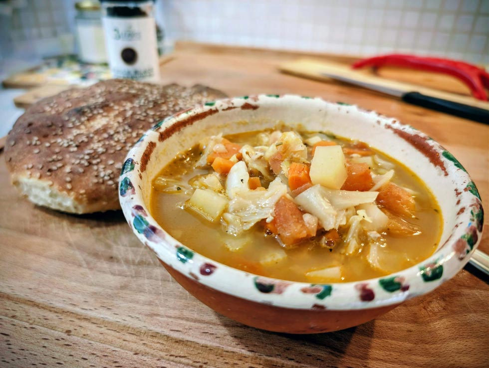 Cover and simmer gently for 25–30 minutes, or until the potatoes and cabbage are tender and the flavours have come together.