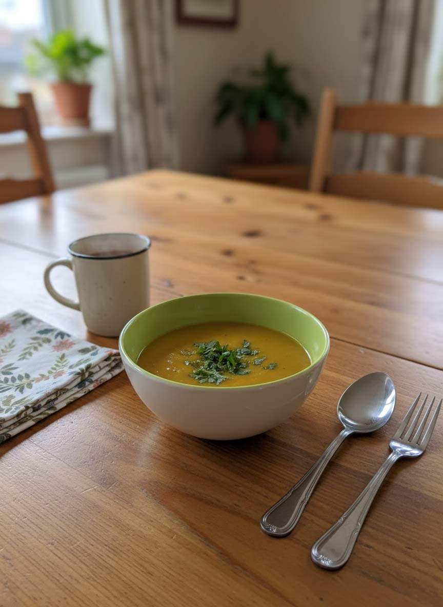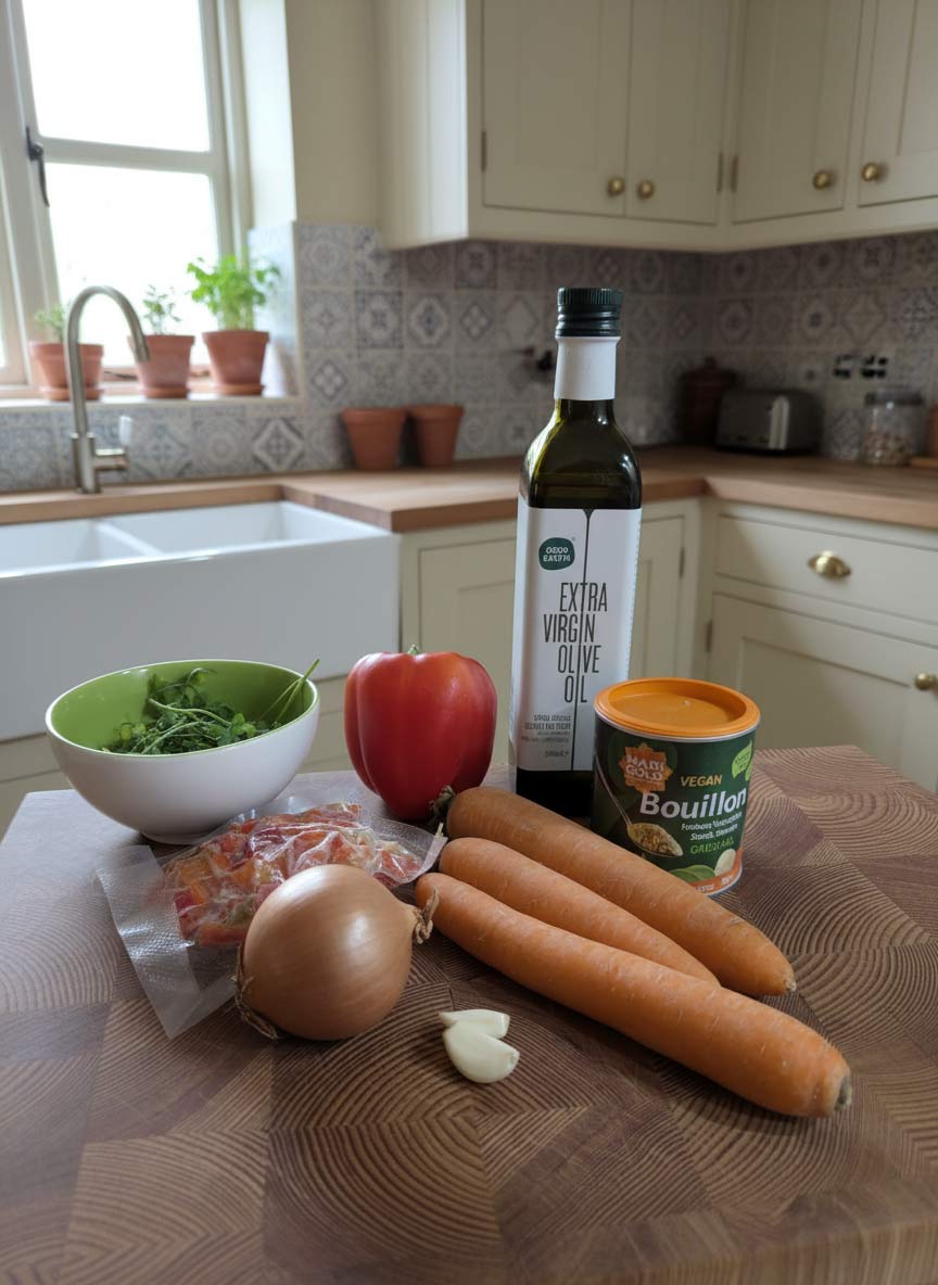 This Spiced Carrot Soup is a vibrant, silky bowl of comfort inspired by the classic vegan carrot soup. Built on sweet carrots, creamy coconut milk and aromatic sautéed onions, this version introduces a Mediterranean spice twist: paprika, cumin seeds and a touch of oregano. The result is deeper, warmer, and beautifully fragrant — perfect for cool evenings, quick lunches, or meal-prep days. Naturally vegan, dairy-free and wonderfully easy.